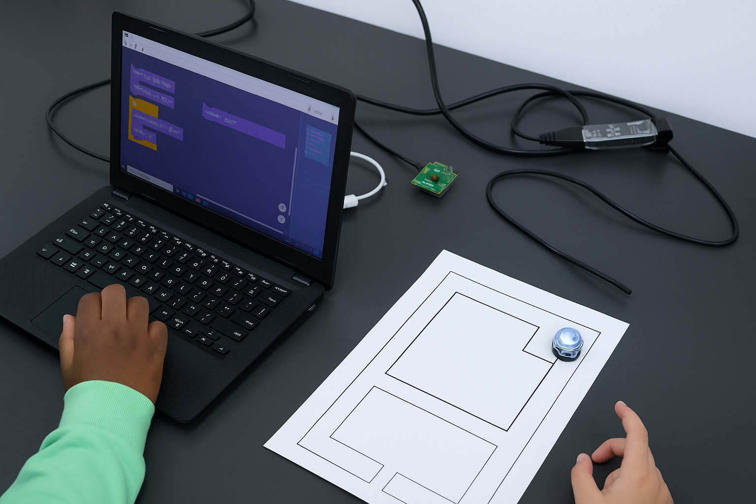 de verschillende blokken gebruiken om de Ozobot een parcours te laten afleggen