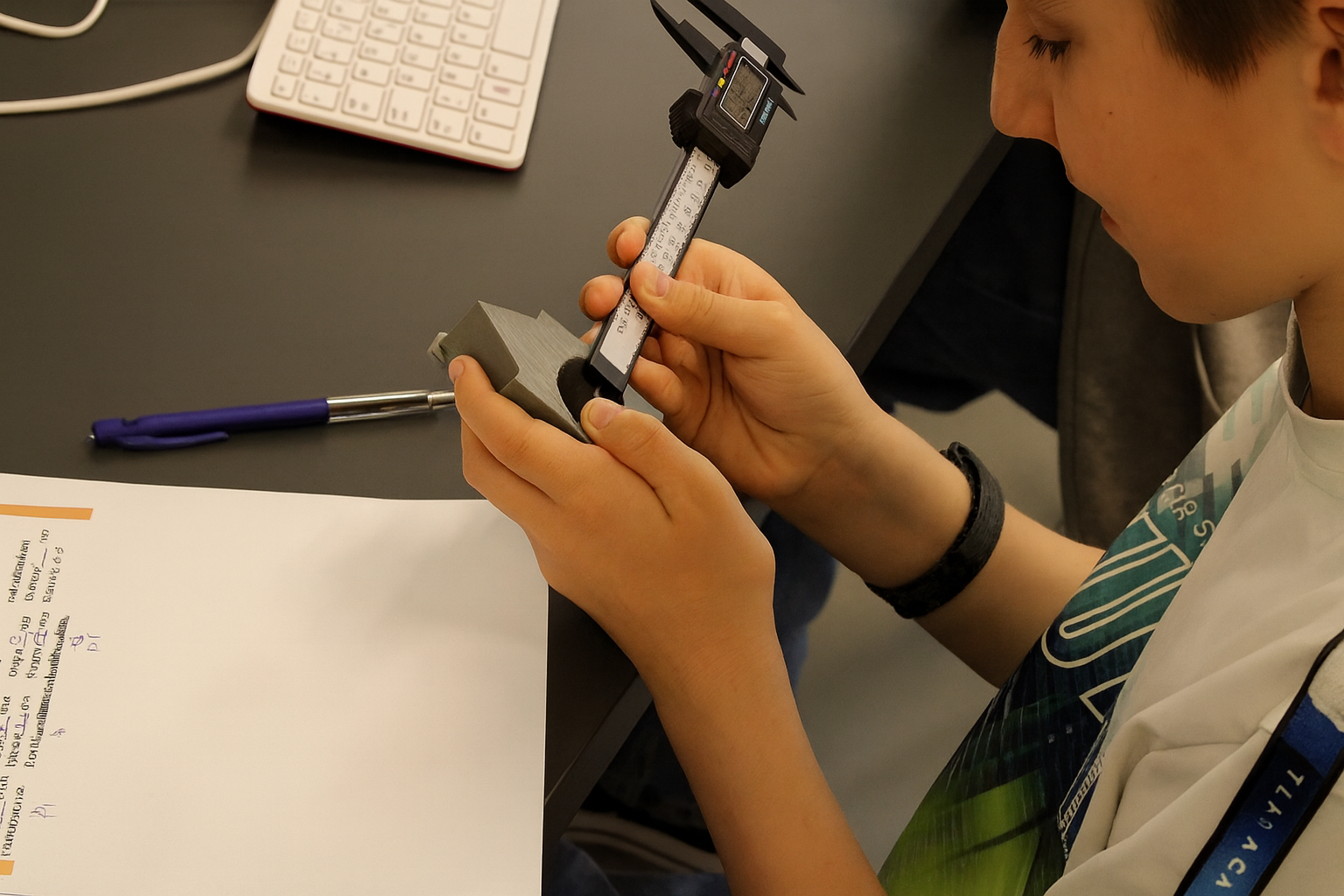 3D-modelleren betekent dat je digitale vormen bouwt op de computer. Je vertrekt van primitieve vormen zoals kubus, bol, cilinder, piramide, kegel en ring. Met een digitale schuifmaat leer je precies meten. In TinkerCAD maak je tekeningen door deze vormen samen te voegen tot één complexe 3D-vorm.