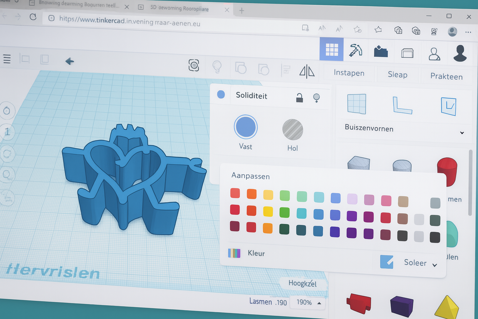 een eigen ontwerp maken dat nadien met de 3D printer geprint wordt