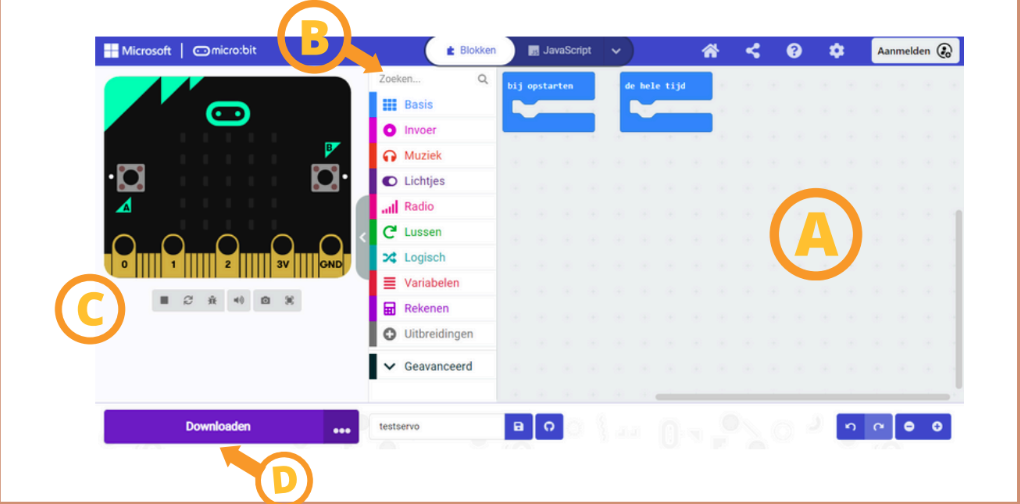 Introduceer eenvoudige bewegingen zoals draaien, omhoog en omlaag gaan met behulp van servo's.