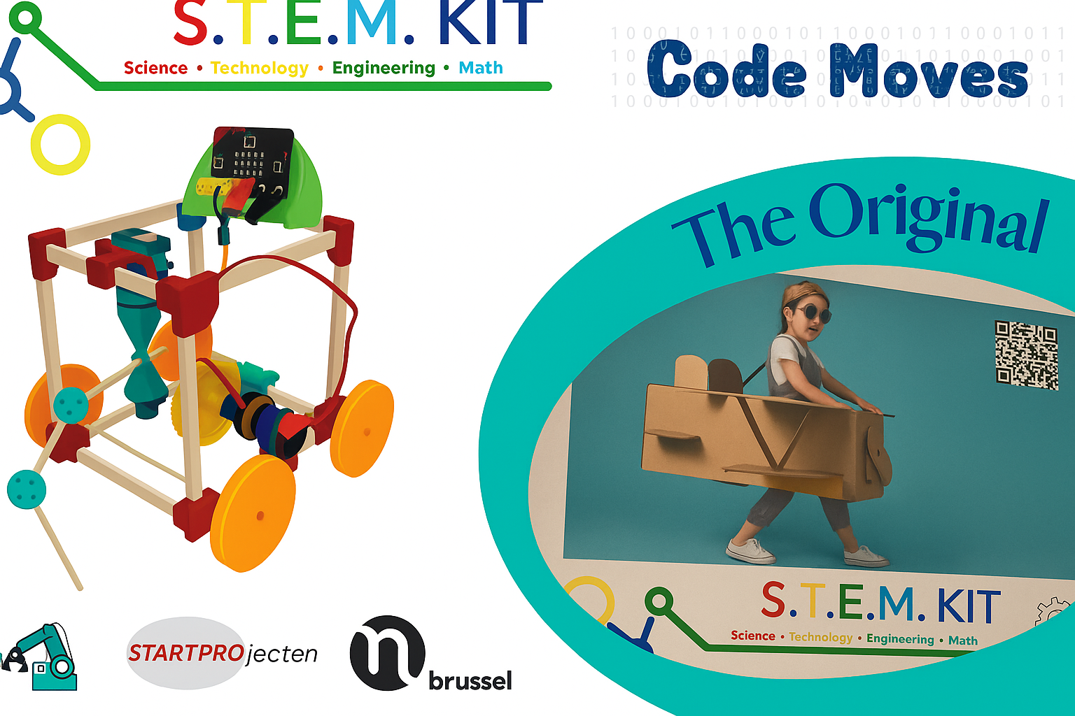 Dankzij de steun van de Vlaamse Gemeenschapscommissie is de S.T.E.M. klas-kit gratis voor Brusselse scholen. Bij elke klas-kit zit ook een leraarskit. Die bevat extra materiaal en aanvullende informatie voor de leerkracht.